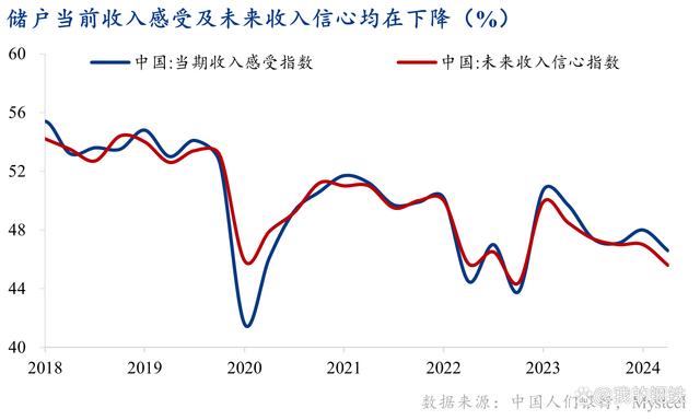 居民消費疲乏,且表現(xiàn)為追求性價比,導(dǎo)致企業(yè)生產(chǎn)供給偏多,競爭激烈下價格注定承壓。企業(yè)利潤變薄,居民工資收入有下行壓力,而且企業(yè)繼續(xù)投資的意愿和能力均下降,工資收入預(yù)期也轉(zhuǎn)弱。央行調(diào)查顯示,今年二季度儲戶對當(dāng)前收入感受及收入信心均在下滑。