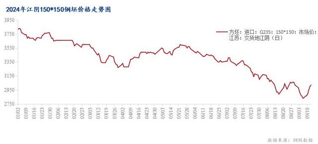 圖2:2024年鋼坯價格走勢圖 數據來源:鋼聯數據